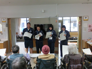 次に、地域の芸能発表でした。最後の今年度は、平中のある牛屋集落の「獅子舞」でした。地域で大切に受け継がれてきた三匹の獅子による舞を披露していただきました。生徒も鑑賞し、地域の伝統芸能を肌で感じることができました。